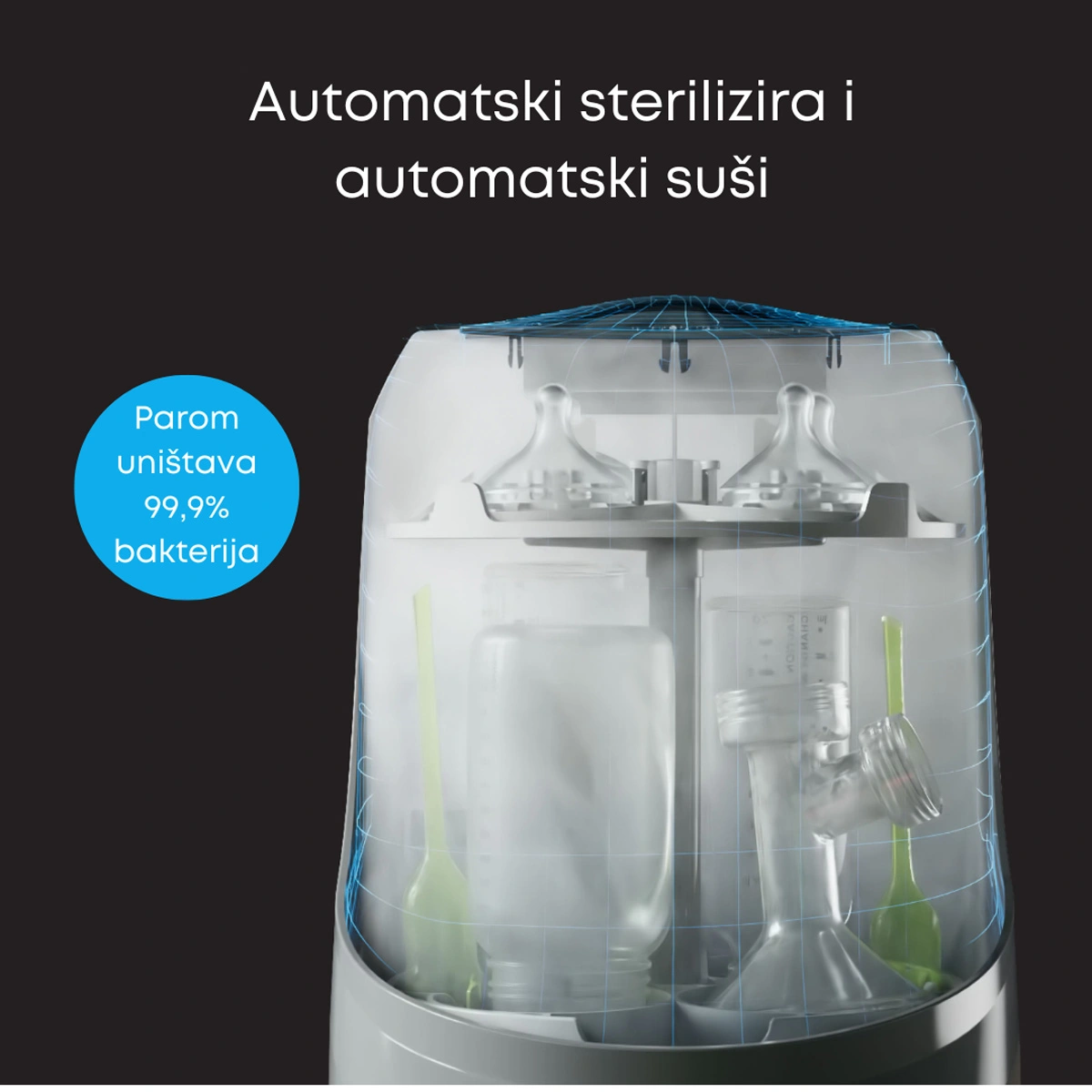Automatski pere, sterilizira i suši bočice, izdajalice i čašice za piće. Više nikada nećete morati koristiti četke za bočice!