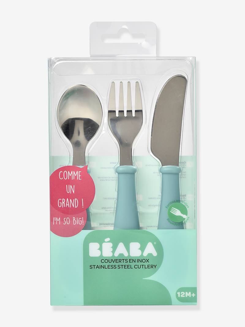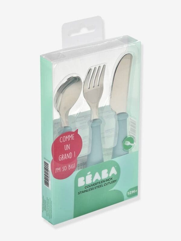 Beaba set od 3 komada pribora za jelo od nehrđajućega čelika kako bi vaš mališan naučio jesti kao veliki.