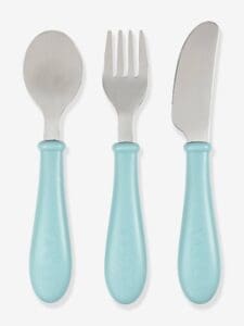 Beaba set od 3 komada pribora za jelo od nehrđajućega čelika kako bi vaš mališan naučio papati kao veliki. Žlica, vilica i nož. Ergonomska drška. Perivo u perilici posuđa. Bez bisfenola A.