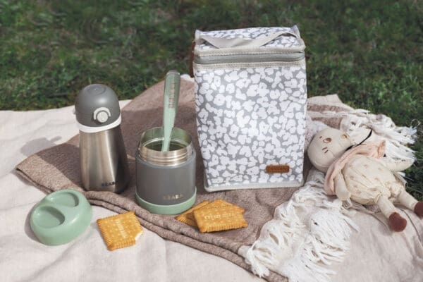 Izotermni Thermo-posuda od nehrđajućeg čelika tvrtke Béaba može se koristiti za prenašanje dječjih obroka kad su vani. U dvostrukim stijenkama od nehrđajućeg čelika održava temperaturu nekoliko sati, 7 sati za hladnu hranu (pirjano voće) i 6 sati za tople obroke (pire ili slično). Bez gubitka okusa ili mirisa, savršena je alternativa za hranjenje bebe kad je vani. Čvrsta i hermetična, lako se prenosi.