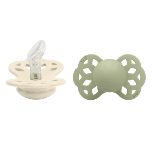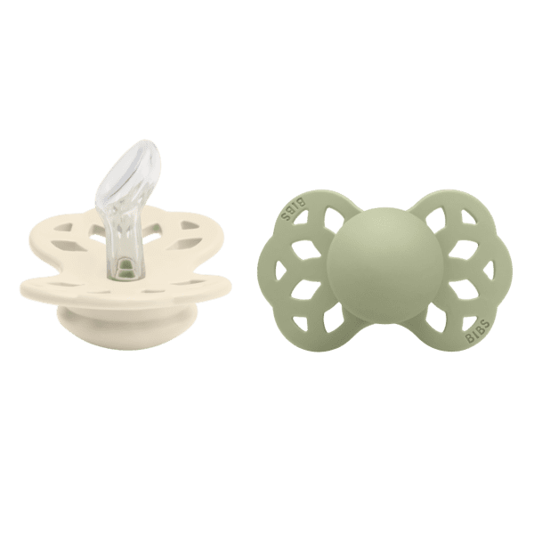 BIBS Infinity duda ima anatomski oblikovan sisač koji savršeno odgovara bebinoj usnoj šupljini. Anatomski sisač osigurava smanjeni pritisak na zube, desni i čeljust i time umanjuje šanse za razvoj krivog zagriza i razvoja čeljusti. Sisač BIBS Infinity dude je izrađena od silikona, a okvir dude je od polipropilena sigurnog za hranu. Okvir dude je dizajniran u obliku leptira s udubljenjem u području ispod nosa čime se omogućava neometano disanje. Zaobljeni rubovi omogućavaju da duda prianja uz lice bez ikakvih neugodnosti, a rupice u okviru omogućavaju protok zraka na osjetljivom području oko usta. BIBS Infinity dude dolaze u dvije veličine: