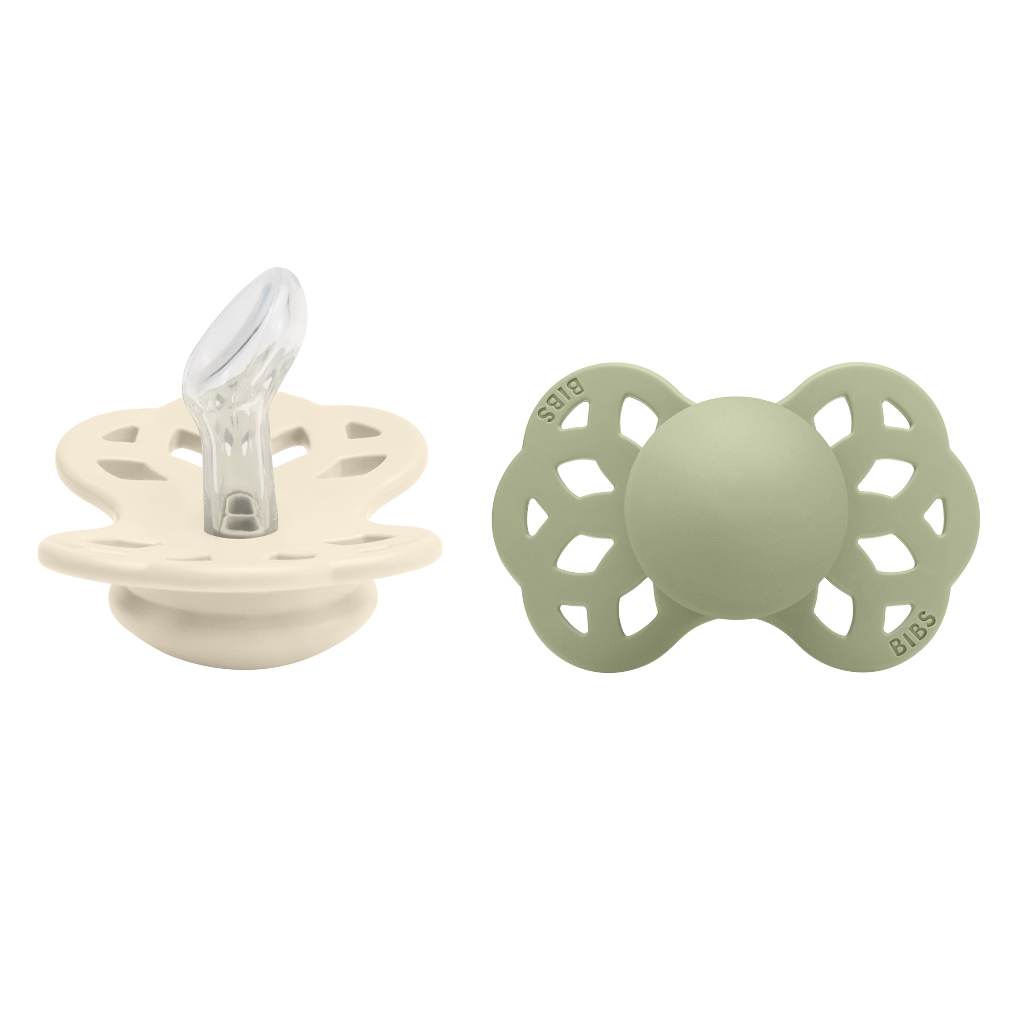 BIBS Infinity duda ima anatomski oblikovan sisač koji savršeno odgovara bebinoj usnoj šupljini. Anatomski sisač osigurava smanjeni pritisak na zube, desni i čeljust i time umanjuje šanse za razvoj krivog zagriza i razvoja čeljusti. Sisač BIBS Infinity dude je izrađena od silikona, a okvir dude je od polipropilena sigurnog za hranu. Okvir dude je dizajniran u obliku leptira s udubljenjem u području ispod nosa čime se omogućava neometano disanje. Zaobljeni rubovi omogućavaju da duda prianja uz lice bez ikakvih neugodnosti, a rupice u okviru omogućavaju protok zraka na osjetljivom području oko usta. BIBS Infinity dude dolaze u dvije veličine: