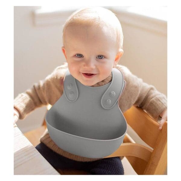 Prednji pretinac je dovoljno mekan kako djetetu ne bi smetao kada sjedi za stolom, a istovremeno dovoljno čvrst da se ne savija i prolijeva iz njega pri pokretima djeteta ili pri skidanju podbradnika.