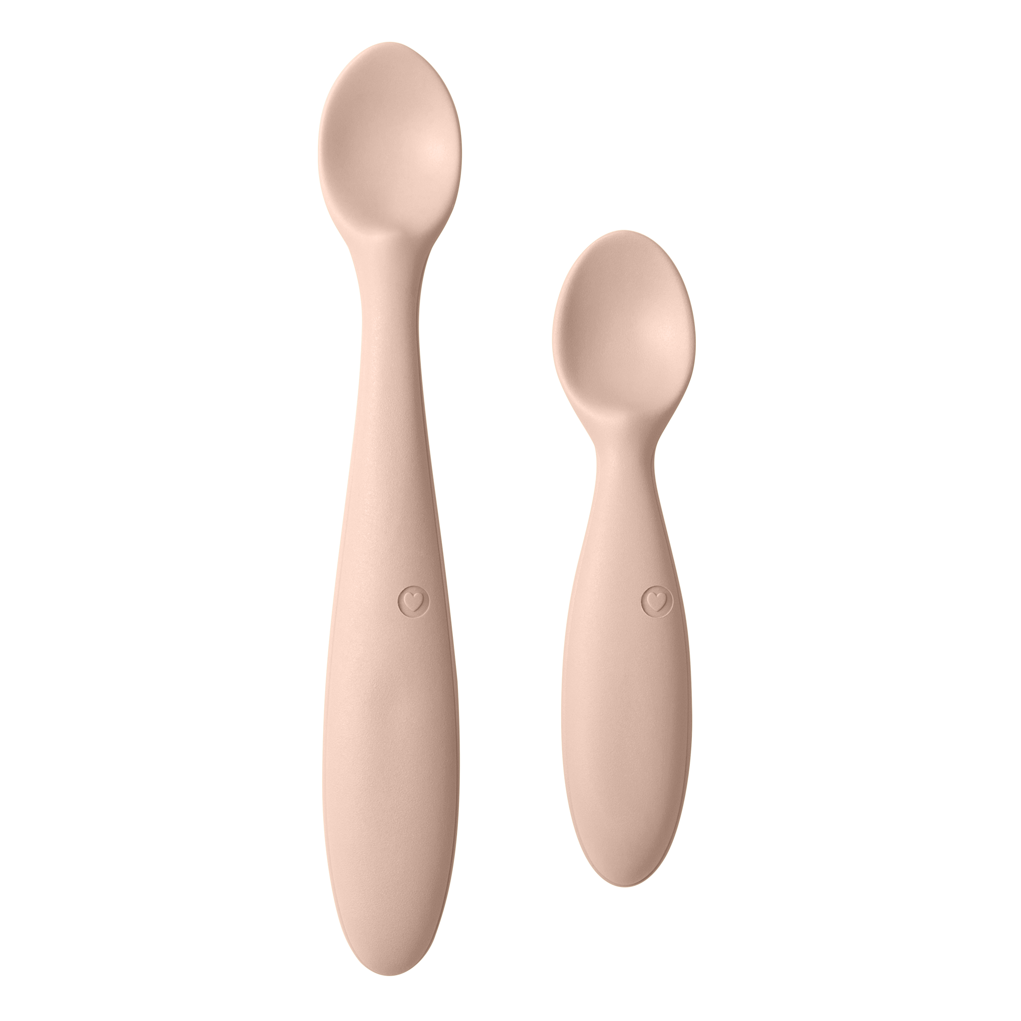 Mekane i uske, žličice prilikom korištenja neće ozlijediti osjetljive desni i čeljust u razvoju te su ergonomski oblikovane za najbolji mogući zahvat šakom. Žličica s duljom drškom namijenjena je za učenje primjerom, kako bi roditelj mogao aktivno sudjelovati u procesu hranjenja, kao i za period kada se bebu hrani. Manja žličica savršena je za djetetove prve korake u samostalnom hranjenju.