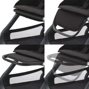 Od prvog dana možete birati između različitih konfiguracija koje najbolje odgovaraju vama i vašem djetetu, uključujući i opcionalnu košaru pune veličine s ugrađenim prozračnim panelom. Produživi krović štiti u svim vremenskim uvjetima – uključujući dodatni štitnik za sunce. Za malu djecu tu je podstavljeni pojas s jednostavnim kopčanjem za maksimalnu udobnost. Sve ključne funkcije – sklapanje kolica, uklanjanje košare ili podešavanje veličine – možete obaviti jednom rukom.