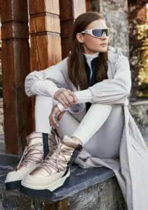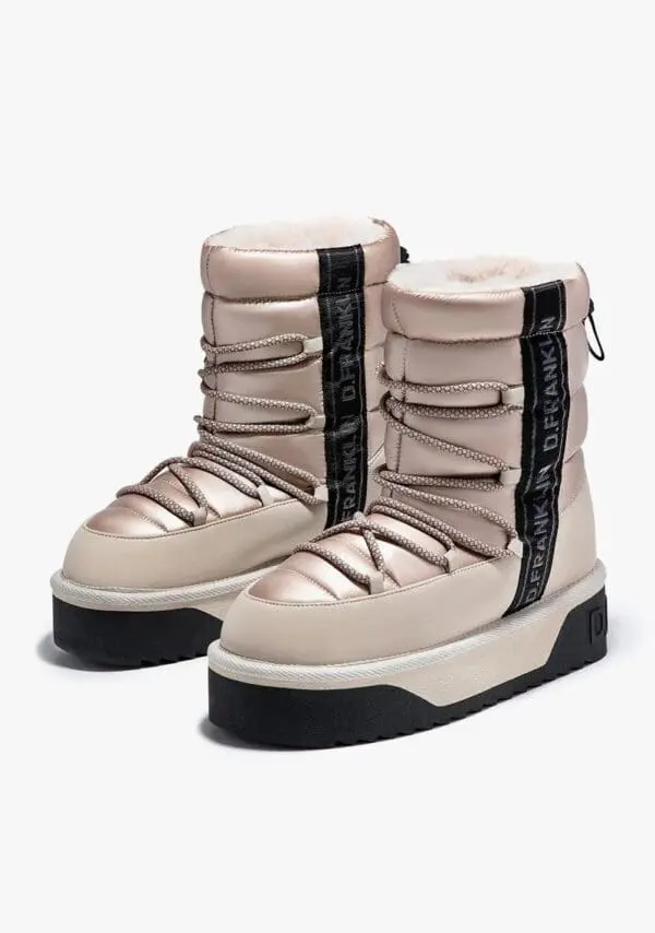 Prošiven završni dizajn koji definira trend après-ski. Dizajn je odraz krajolika koji dominiraju hladnim danima. Ove čizme imaju visokokvalitetnu vodoodbojnu tkaninu. Trail vezice s više položaja pružaju optimalnu potporu i imaju ojačane zakovice. Osim toga, podstava od sintetičkog krzna dodaje vrhunski zimski štih. Napravljen od PETA odobrenih veganskih materijala i podstava od 30% recikliranih materijala (Global Recycled Standard).