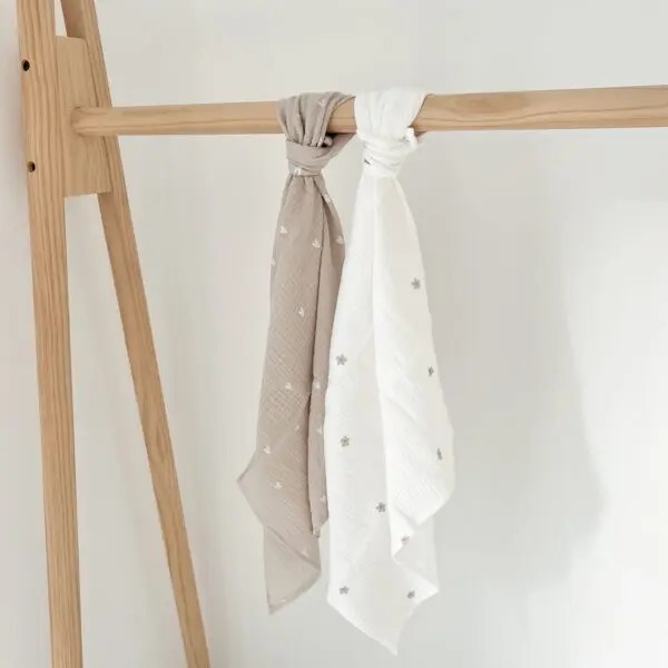 Muslin tetra pelene dimenzija 80×80 cm dolaze u praktičnom setu od 2 komada, savršene za svaku priliku u bebinoj svakodnevici.