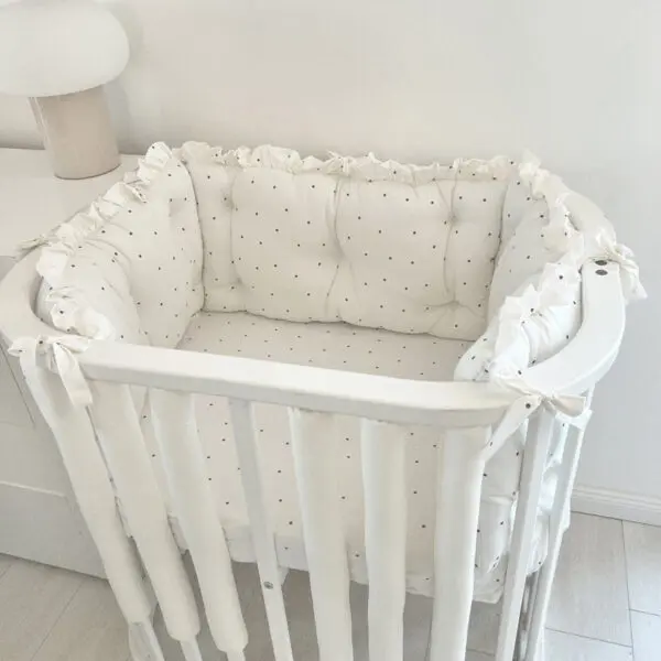 Ogradica Dreamy je idealna za roditelje koji žele sigurniji i udobniji krevetić za svoje dijete bez kompromisa u estetici — mekana zaštita smanjuje rizik od udaraca, a moderan dizajn daje skladan izgled prostoru.