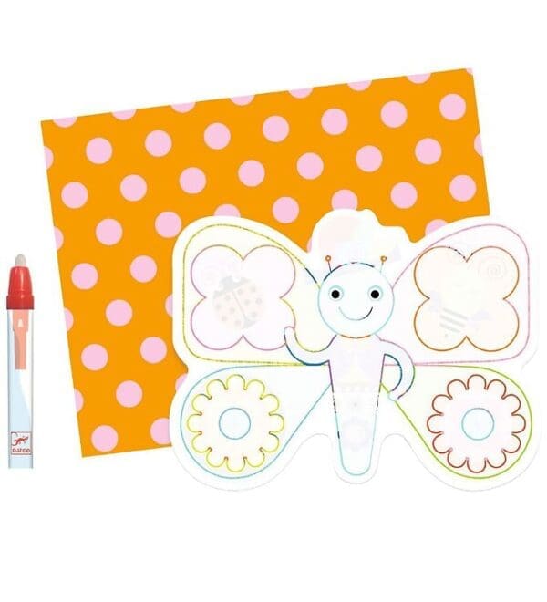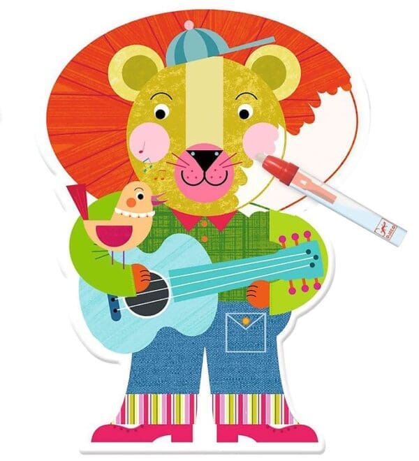 Sadrži 4 slike za bojanje na mekanim plastičnim pločama (s bijelim područjima koja nestaju), olovku sa spremnikom za vodu i stalak od kartona