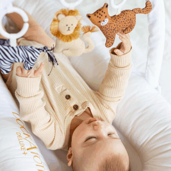 Set igračaka za aktivnost u kombinaciji s Dockatot® lukom za igru iznimno je zabavan dodatak Dockatot® Deluxe+ gnjezdašcima, za bebe od 0 do 8 mjeseci. Komplet od 3 viseće igračke za bebe namjesti se na igraći luk za gnjezdašca Dockatot® Deluxe+ Beba se zabavlja dok gleda slatke viseće igračke u sigurnom i mekom zaklonu gnijezda. Važno je da je novorođenče od rođenja okruženo predmetima i igračkama koje potiču njegovu moždanu aktivnost i potiču motorički razvoj djetetate zvučnu i vizualnu percepciju. Setove igračaka za aktivnost Cheeky Chums i Fuzzy Pals osmislio je i dizajnirao njujorški ilustrator i svestrani umjetnik Matthew Langille, aigraći set Cloud Friends nastao je u suradnji s renomiranim švedskim brendom Mrs. Mighetto.