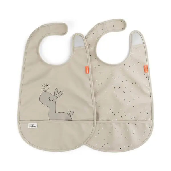 Dva simpatična podbradnjaka brenda Done by Deer sa džepom će uvijek uloviti hranu, koja padne iz malenih rukica. Podbradnjaci su vodootporni i jednostavni za čišćenje te namještanje.
