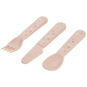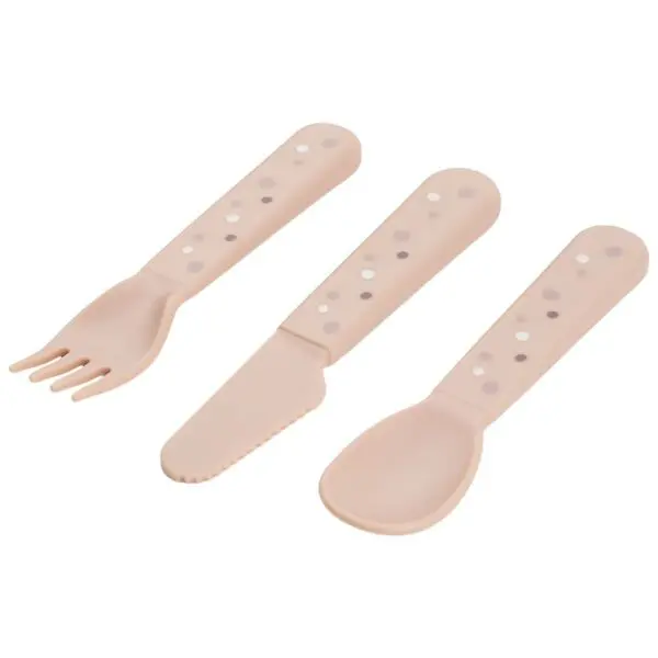 Super sladak i praktičan pribor za jelo Done by Deer s točkicama stvoren je za male ruke s velikim ambicijama. Ima meke, zaobljene rubove, što ga čini sigurnim za malu djecu koja uče samostalno jesti. Simpatičan set sastoji se od žlice, vilice i noža.