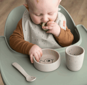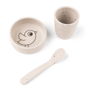 Praktičan Done by Deer silikonski set u kojem zaprimate šalicu, zdjelicu i žlicu. Savršene je veličine za mališane koji počinju sa samostalnim hranjenjem. Može se koristiti u mikrovalnoj pećnici, perilici posuđa i zamrzivaču. Proizvodi su savršeni za male rukice te za jedostavno hvatanje hrane.