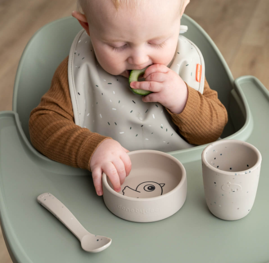 Done by Deer – Silikonski set za hranjenje Birdee, Sand