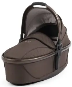 Košara za novorođenče egg3® kolica stvara savršeno utočište za prvih šest mjeseci života vašeg djeteta, pružajući luksuzno i sigurno okruženje koje osigurava udobnost i zaštitu vaše bebe u ležećem položaju. Sadrži novi održivi Sorona® madrac, koji je periv, prozračan i bez kemikalija. Nova košara za novorođenče također uključuje proširivi krović s ventilacijskim prozorom. Kako biste lakše mogli uspavati svoju bebu, nova košara ima mogućnost ljuljanja.