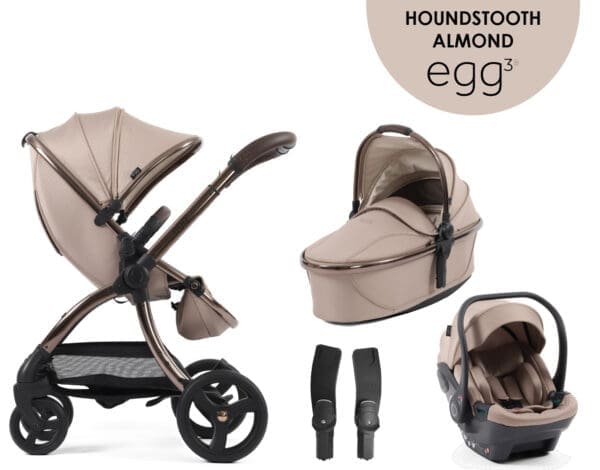 egg3® Special Edition Houndstooth Almond 3u1 Dječja kolica imaju poboljšan, proširiv krović, savršen za dnevna drijemanja i pruža potpunu zaštitu vašeg mališana od sunca zahvaljujući tkaninama sa zaštitom UPF 50+.