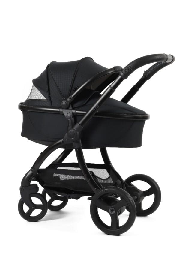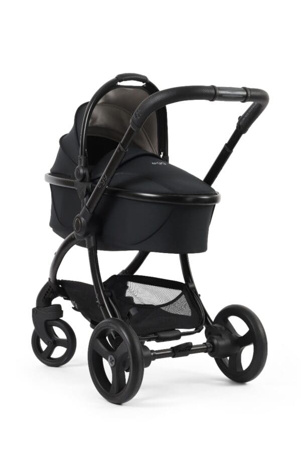 Košara za novorođenče egg3® kolica stvara savršeno utočište za prvih šest mjeseci života vašeg djeteta, pružajući luksuzno i sigurno okruženje koje osigurava udobnost i zaštitu vaše bebe u ležećem položaju. Sadrži novi održivi Sorona® madrac, koji je periv, prozračan i bez kemikalija. Nova košara za novorođenče također uključuje proširivi krović s ventilacijskim prozorom. Kako biste lakše mogli uspavati svoju bebu, nova košara ima mogućnost ljuljanja.