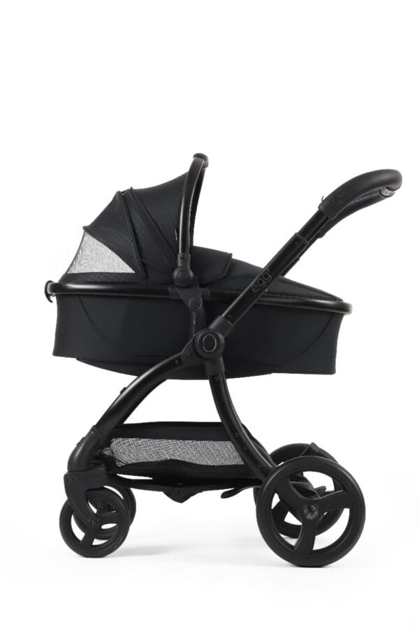 Košara za novorođenče egg3® kolica stvara savršeno utočište za prvih šest mjeseci života vašeg djeteta, pružajući luksuzno i sigurno okruženje koje osigurava udobnost i zaštitu vaše bebe u ležećem položaju. Sadrži novi održivi Sorona® madrac, koji je periv, prozračan i bez kemikalija. Nova košara za novorođenče također uključuje proširivi krović s ventilacijskim prozorom. Kako biste lakše mogli uspavati svoju bebu, nova košara ima mogućnost ljuljanja.