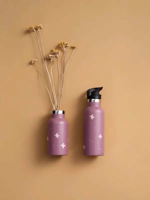 Ova slatka dječja Fresk termos boca s uzorkom lastavica čuva tekućinu hladnom do 24 sata i toplom do 12 sati.
