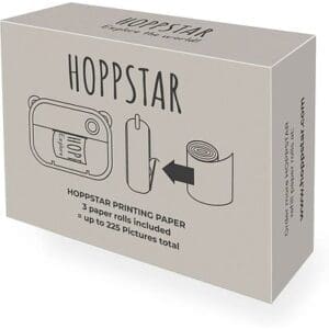 Prilikom kupnje kamere Hoppstar Artist, u pakiranju proizvoda su uključene 3 role papira za ispis (2x obični termo papir i 1x samoljepljivi termo papir). Ako trebate više, preporučujemo pakiranje od 3 role papira za ispis za cca. 220 fotografija (cca. 0,04 € po fotografiji).