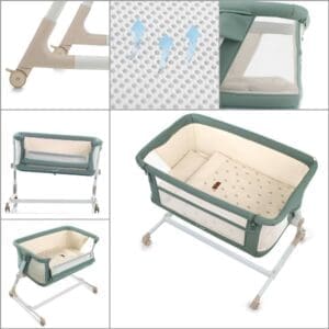Funkcija colecho (pristajanje uz roditeljski krevet): krevetić se može spojiti uz bilo koji standardni krevet roditelja radi lakšeg dojenja i nadzora.