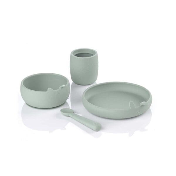 Ergonomski oblik žlice i neklizajuća čašica dizajnirani su da olakšaju bebi držanje i učenje samostalnog hranjenja i pijenja, dok zdjela i tanjur s jakim vakuumskim dnom čvrsto prianjaju na površinu i smanjuju mogućnost prevrtanja ili prolijevanja tijekom obroka.