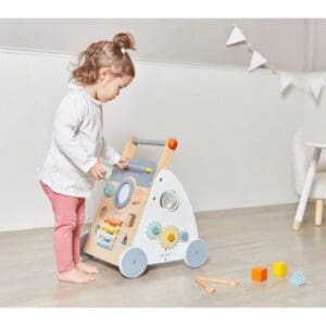 Osim pomoći vašem djetetu kod prvih koraka, Sweet Cocoon guralica nudi 9 različitih načina testiranja motoričkih sposobnosti i spretnosti. S abakusom, kutijom s oblicima, labirintom, zupčanicima, okretnim prekidačem s ugrađenim zvukom, “grebanjem” dugmeta, povećalom okretnim zrcalom, bubnjem i metalnim ksilofonom, vaše dijete će imati beskrajno mnogo mogućnosti za zabavu i učenje.