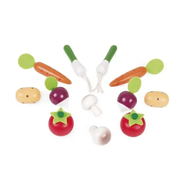 Ništa zato – zavirite u Janodovu kašetu s povrćem, sigurni smo da ćete pronaći sve potrebno za jedan fini i zdrav ručak! Drvena kašeta sadrži 12 komada raznovrsnog povrća, također od drva: 2 poriluka, 2 rotkivce, 2 krumpira, 2 gljive, 2 rajčice i 2 mrkvice.