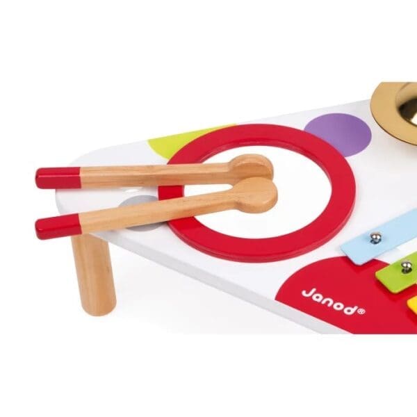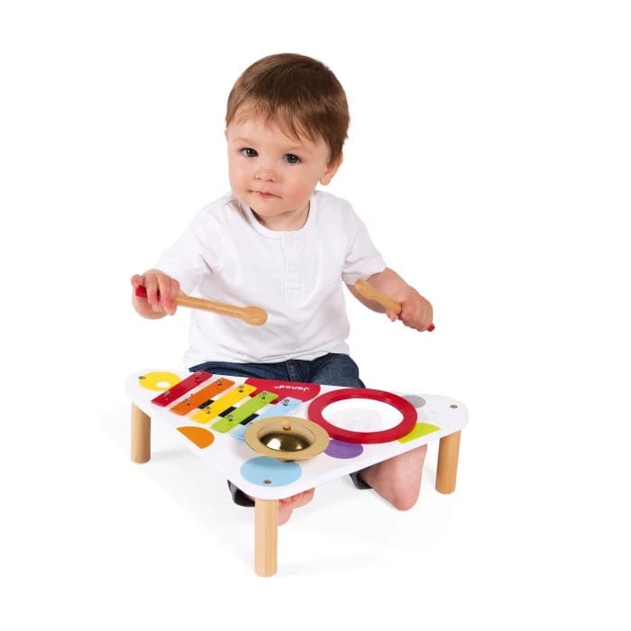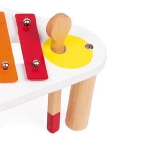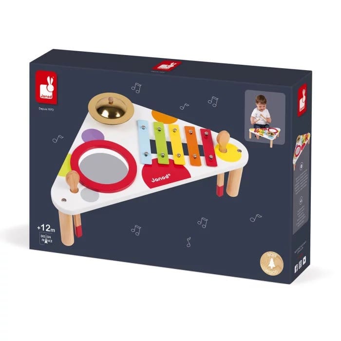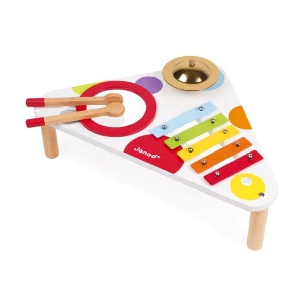 Sastoji se od ksilofona, činela i bubnja, a uz njega dolaze i dvije drvene udaraljke. Vedre boje glazbenog stola – crvena, narančasta, žuta i plava jednostavno pozivaju na igru, bilo da se svira pop, rock ili nešto treće.
