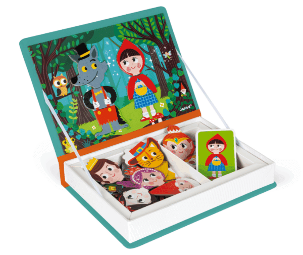 Ova kutija s magnetima sastoji se od 55 magneta i 10 kartica s ilustracijama koje treba spretno složiti. Kada izvučete karticu koju želite slagati, postavite ju na unutarnju stranu kutije koja je magnetizirana i složite istu takvu sliku od magneta iz kutije.