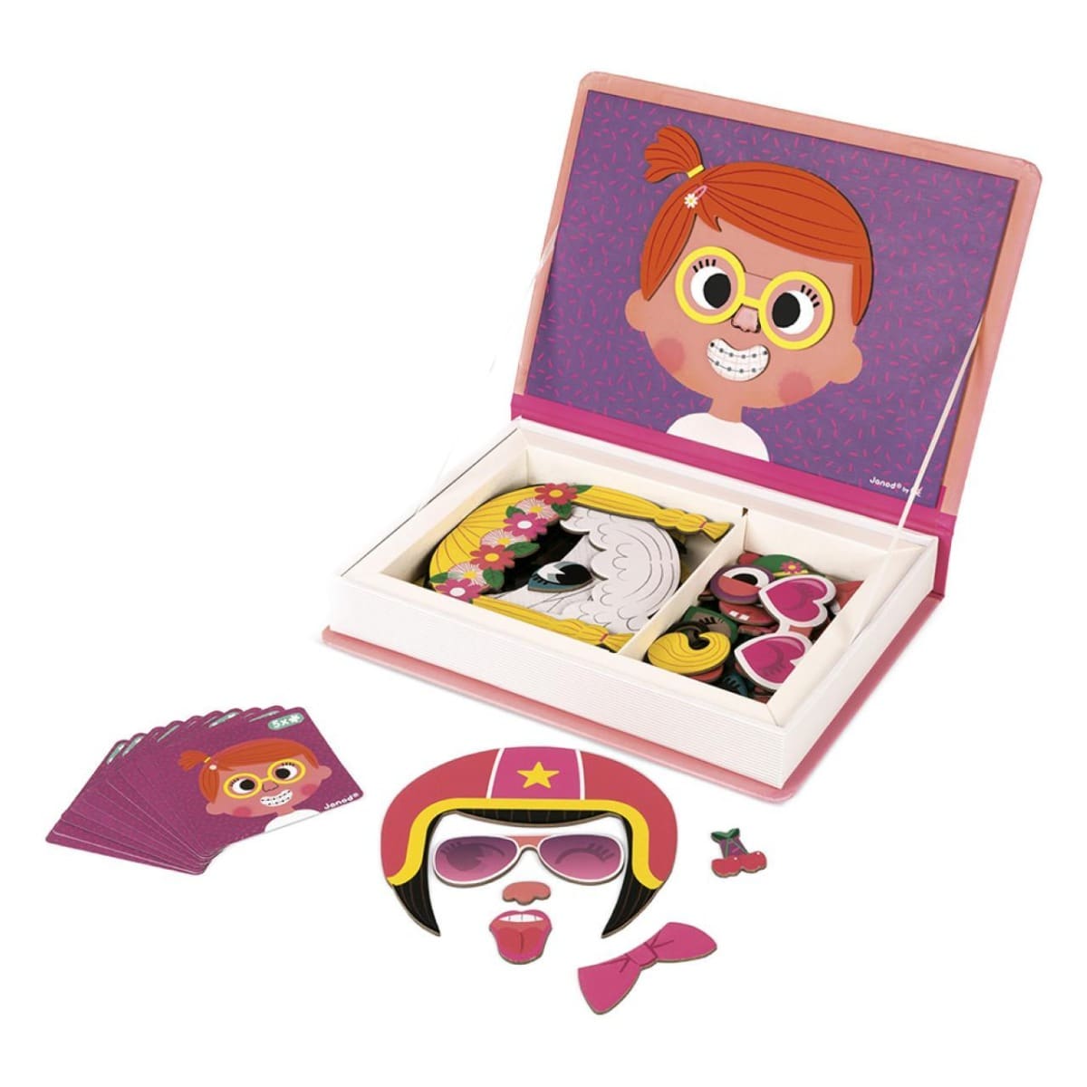 Ova kutija s magnetima sastoji se od 55 magneta i 10 kartica s ilustracijama koje treba spretno složiti. Djeca vole stvarati likove i izmišljati priče, a cilj ove igre je stvoriti čim luđe likove kako bi vožnja autom bila čim zabavnija. Kada izvučete karticu koju želite slagati, postavite ju na unutarnju stranu kutije koja je magnetizirana i složite istu takvu sliku od magneta iz kutije.