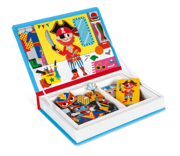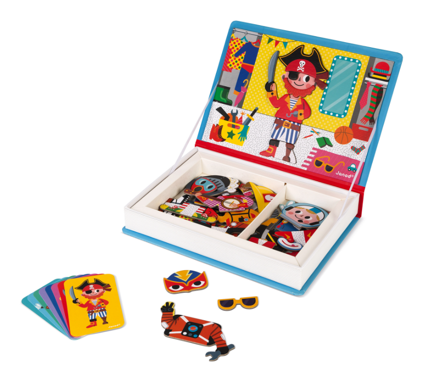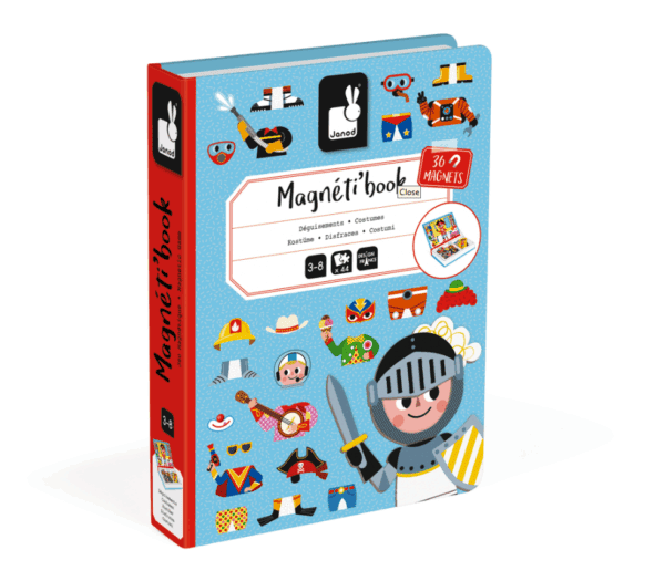 Ova kutija s magnetima sastoji se od 36 magneta i 8 kartica s ilustracijama koje treba složiti iz kutije. Djeca vole stvarati likove i izmišljati priče, a cilj ove igre je pronaći dijelove kostima kojeg nosi kauboj, gusar, vitez, astronaut ili pak vatrogasac. Ako se ne volite držati pravila igre, uvijek možete stvoriti vlastite lude kombinacije i povezati dijelove kostima u jedan šašavi. Kada izvučete karticu koju želite slagati, postavite ju na unutarnju stranu kutije koja je magnetizirana i složite istu takvu sliku od magneta iz kutije.