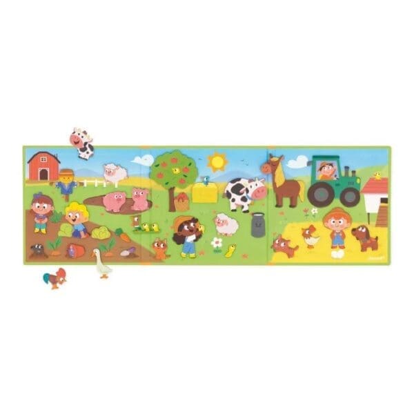 Uđite u svijet neizmjernih avantura na Janod farmi uz našu čarobnu dječju priču s magnetima! Zabava na farmi nikad nije bila ovako živa i dinamična. Ova nevjerojatna igra sadrži magnetnu ilustriranu pozadinu koja će vaše dijete odvesti u svijet šarenih polja i veselih životinja, zajedno s 30 šarmantnih magneta