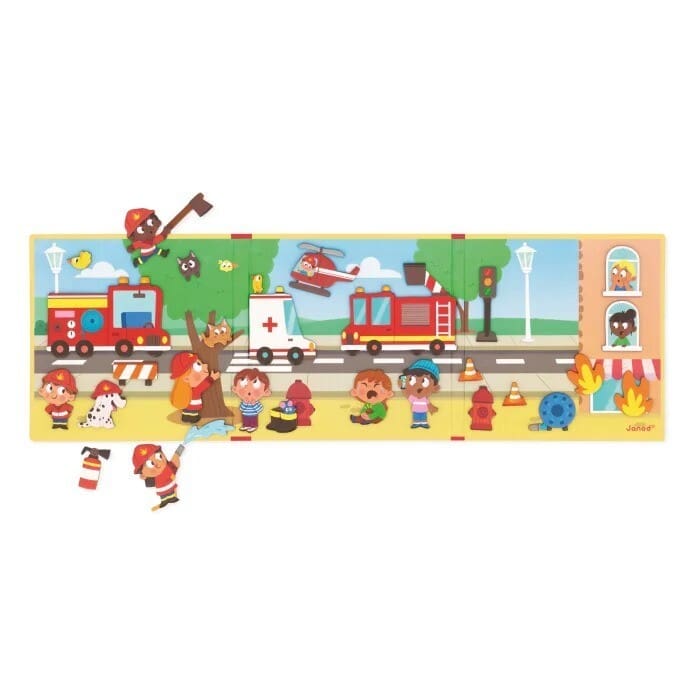 Dopustite djetetu da se prepusti kreativnosti dok sastavlja priče i scenarije iz života hrabrih vatrogasaca. Možda će se naći u ulozi spašavanja mačke zaglavljene na drvetu ili gašenja imaginarnog požara u dalekom gradu. Sve priče su praktične, sklopive i lako prenosive, čineći ih savršenim suputnikom za putovanja ili igru kod kuće.
