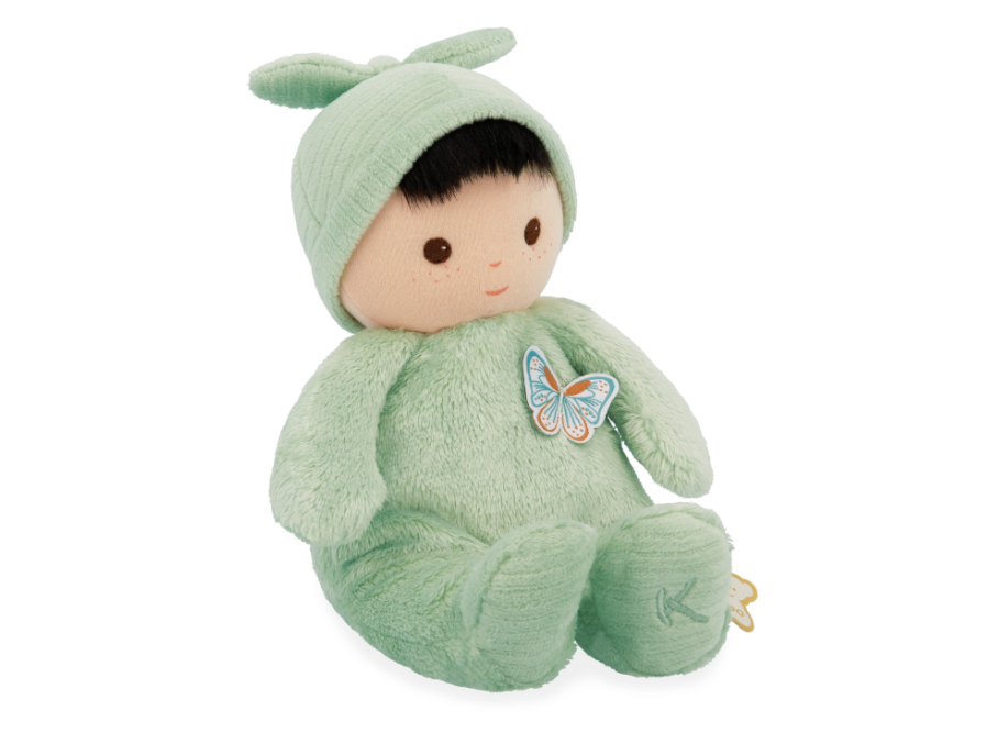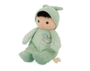 Ova lutka od tkanine, visoka je 24 cm, nosi zelenu pidžamicu i ima prekrasne smeđe oči, idealna za maženje i igru. Izrađena od mekog materijala i podstavljena recikliranim poliesterom, ova beba od tkanine nudi ugodnu teksturu uz koju će maženje biti posebno. Ova lutka je idealan dar za rođenje pun topline i mekoće, te će sigurno postati vjerni pratilac vašeg djeteta.
