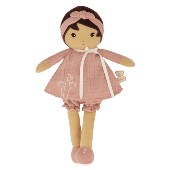 Ovo je Amandine, lutka od 25 cm u prekrasnoj pastelnoj haljinici. Glavu joj krasa traka u istim tonovima. Možete ju ponijeti gdje god išli zbog njene veličine, a sigurni smo da će dugi niz godina biti djetetova najbolja prijateljica.