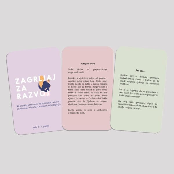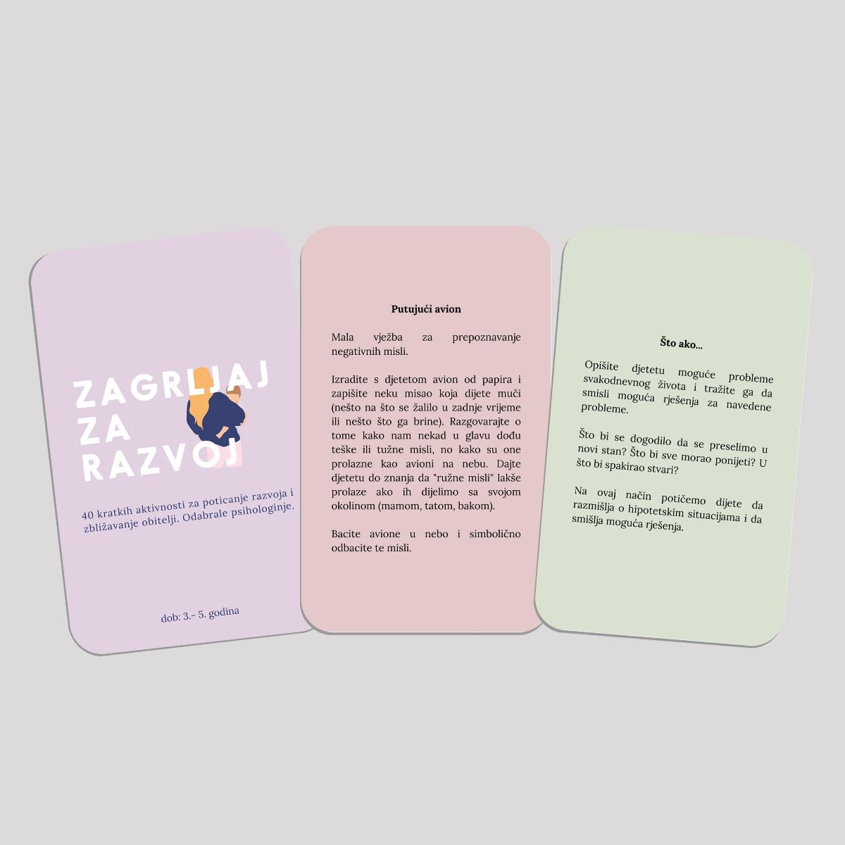 ,,Zagrljaj za razvoj” su kartice s 40 aktivnosti za poticanje razvoja i zbližavanje obitelji. Osmišljene od strane psihologinja.