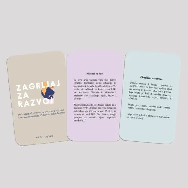,,Zagrljaj za razvoj” su kartice s 40 aktivnosti za poticanje razvoja i zbližavanje obitelji. Osmišljene od strane psihologinja.