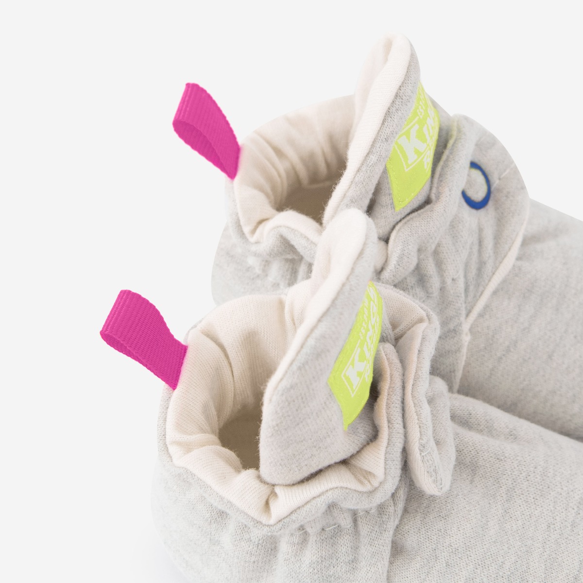 Integrirana elastična traka koja se u potpunosti proteže oko pete i nalazi se iznad gležnja sprječava da čizmica sklizne prema dolje, čak i kod vrlo aktivnih beba.