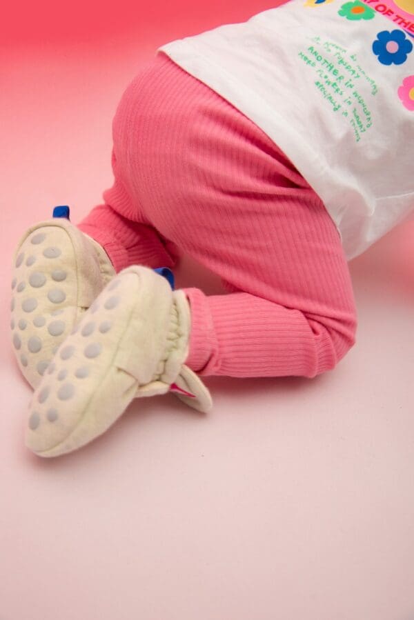 Integrirana elastična traka koja se u potpunosti proteže oko pete i nalazi se iznad gležnja sprječava da čizmica sklizne prema dolje, čak i kod vrlo aktivnih beba.