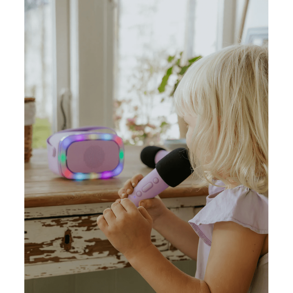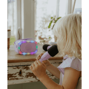 S dva uključena mikrofona i razigranim LED svjetlima s 5 uzbudljivih načina osvjetljenja, ovaj karaoke set bit će zvijezda svake zabave. Ugrađeni izmjenjivač glasa nudi četiri zabavna glasovna efekta, osiguravajući beskrajnu zabavu za vaše male izvođače.