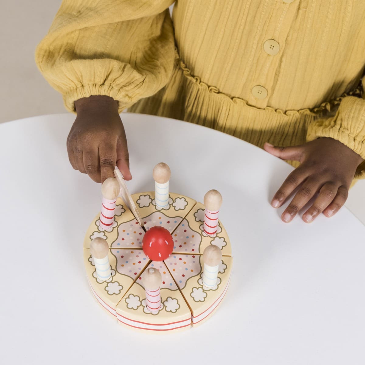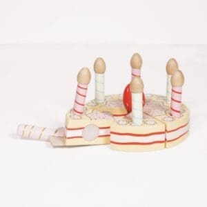 Rođendanska torta sastoji se od 6 komada torte koji se mogu složiti u krug. Na svakom komadu nalazi se mali čičak tako da se komadi bolje drže kada su skupa. Na torti su i neizostavne svjećice koje se mogu skinuti, a tu je i nož za tortu. Također, na ambalaži se nalazi naslikani pladanj koji se može izrezati i koristiti za tortu.