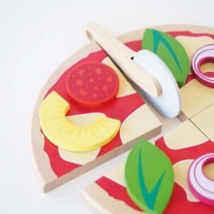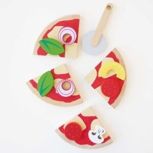 Set se sastoji od 4 komada pizze, dodataka koji su na čičak, poput gljiva ili luka, rezača i pladnja za pečenje. Ostalo je još samo pozvati goste i postaviti stol.