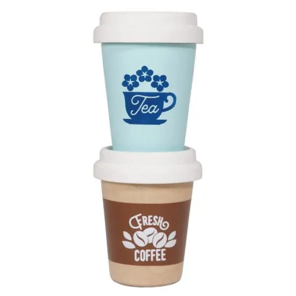 Ovaj slatki set je super igračka za maštovitu igru vaše djece. Svaka šalica koja uistinu izgleda kao prava, ima svoj poklopac i logotip, te je izrađena od održivog drva i ukrašena sigurnim bojama. Ova igračka je univerzalna i super je za sve koji se žele praviti da su odrasli, te je također prilagođena opsežnoj kolekciji igranja uloga Honeybake.