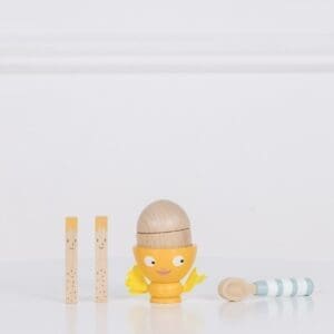 Drvena igračka set za kuhano jaje ima čak šest dijelova. Ovdje ćete pronaći držač za jaje, drvenu žličicu, jaje prepolovljeno na dva dijela i dva drvena štapića.