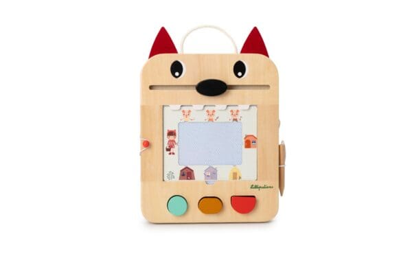 Pogriješili ste ili želite izraditi novi crtež? Louisov nos briše sve što ste nacrtali. Kartice za crtanje pohranjene su u predviđeni utor na stražnjoj strani, a drvena olovka pričvršćena je uzicom kako se ne bi izgubila.