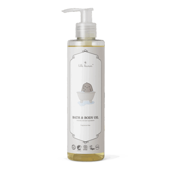 Lille Kanin ulje za kupanje i tijelo je ulje napravljeno od 100% prirodnih sastojaka. Ulje ima mnoge namjene; stavite malo ulja u kadu i kupajte čak i najmlađe bebe. Pomiješajte malo ulja u svoju kremu za lice ili tijelo za dodatnu vlagu. Nanesite malo ulja na vrhove kose za dodatnu njegu. Koristite na vlasištu kako biste spriječili koricu na glavi. Koristite malo ulja za masažu bebe. Samo mašta postavlja granice.