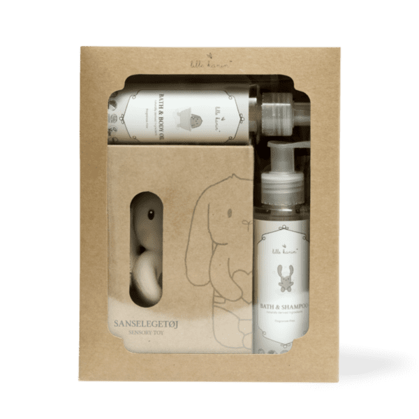 Lille Kanin Gift Box – Sensory Toy & Bath je poklon‑set koji daje kompletan i zabavan doživljaj kupanja za najmanje uzrast bebe i djecu. U ovoj lijepo upakiranoj kutiji nalazi se kombinacija njege i igre koja olakšava rutinu kupanja i čini je ugodnijom za dijete i roditelje.