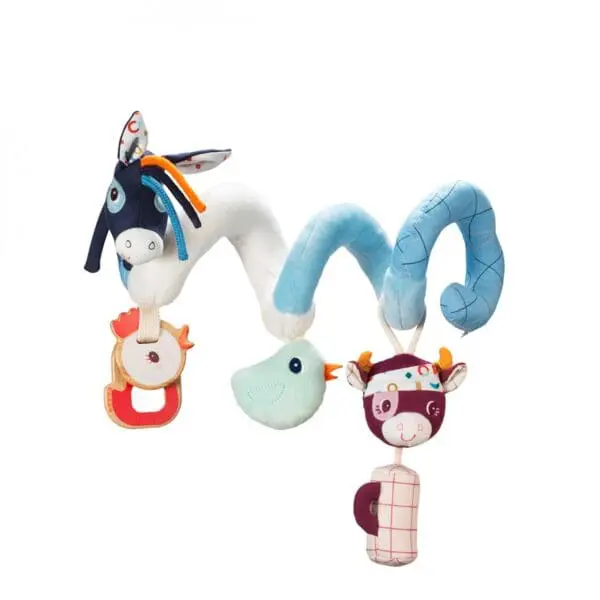 Plišani magarčić Ignacio i njegova tri šarena prijatelja, koje vam donosi Lilliputiens igračka ativna spirala, obećavaju zabavu bebici tijekom šetnje ili vožnje u autu.