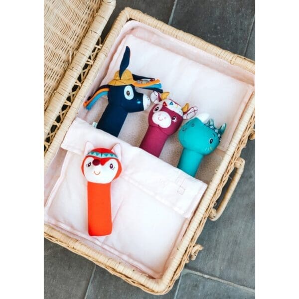 Izrađena od organskog pamuka, ova zvečka na stiskanje stimulira finu motoriku vašeg djeteta i uči ga svemu o akciji i reakciji.